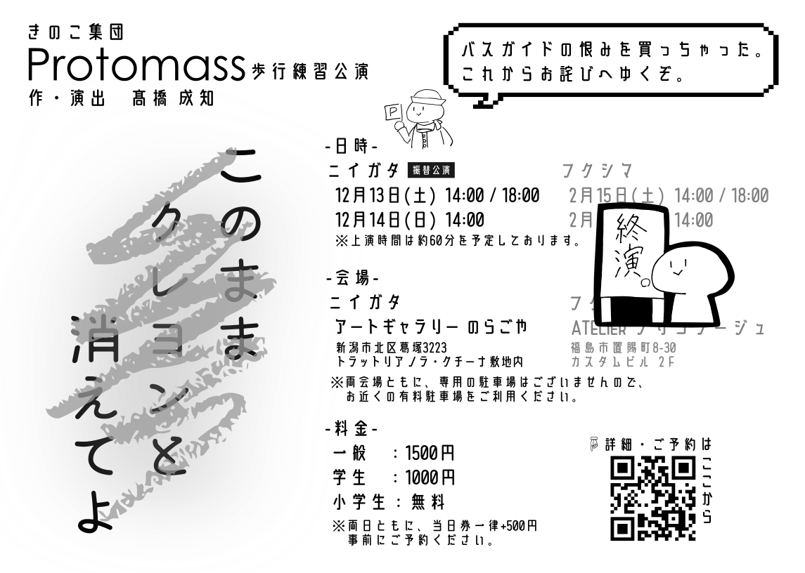 裏方 | 舞台監督・照明:二瓶 碧 音響:髙橋 成知 制作・宣伝美術:大江 優花 |